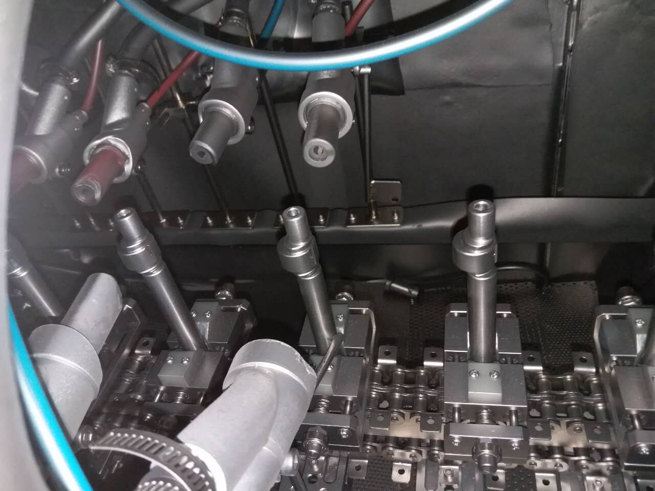 曲軸去毛刺設備由主機、曲軸工裝夾具、噴槍系統(tǒng)、磨料回收、磨料分選、除塵器、電氣控制等組成。加工方式,人工或者機器將曲軸放入待加工區(qū)域,曲軸會自動進入到噴砂加工區(qū),加工好的產品進入吹凈室,吹干表面粉塵,然后進入待加工區(qū),人工或者機器將曲軸取下即可。