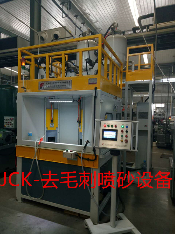 吉川科技JCK系列壓入式液體噴砂去毛刺設(shè)備顛覆了壓入式液體噴砂機(jī)的行業(yè)零空白,目前也是國內(nèi)唯一一家研發(fā)生產(chǎn)出壓入式液體噴砂去毛刺設(shè)備廠家。流體磨料清理速度可達(dá)到每秒180米,通過特殊射流噴嘴可以去除機(jī)械零部件切削、磨削后形狀邊緣和內(nèi)孔交叉孔毛刺,替代毛刷和熱法去毛刺等工藝。